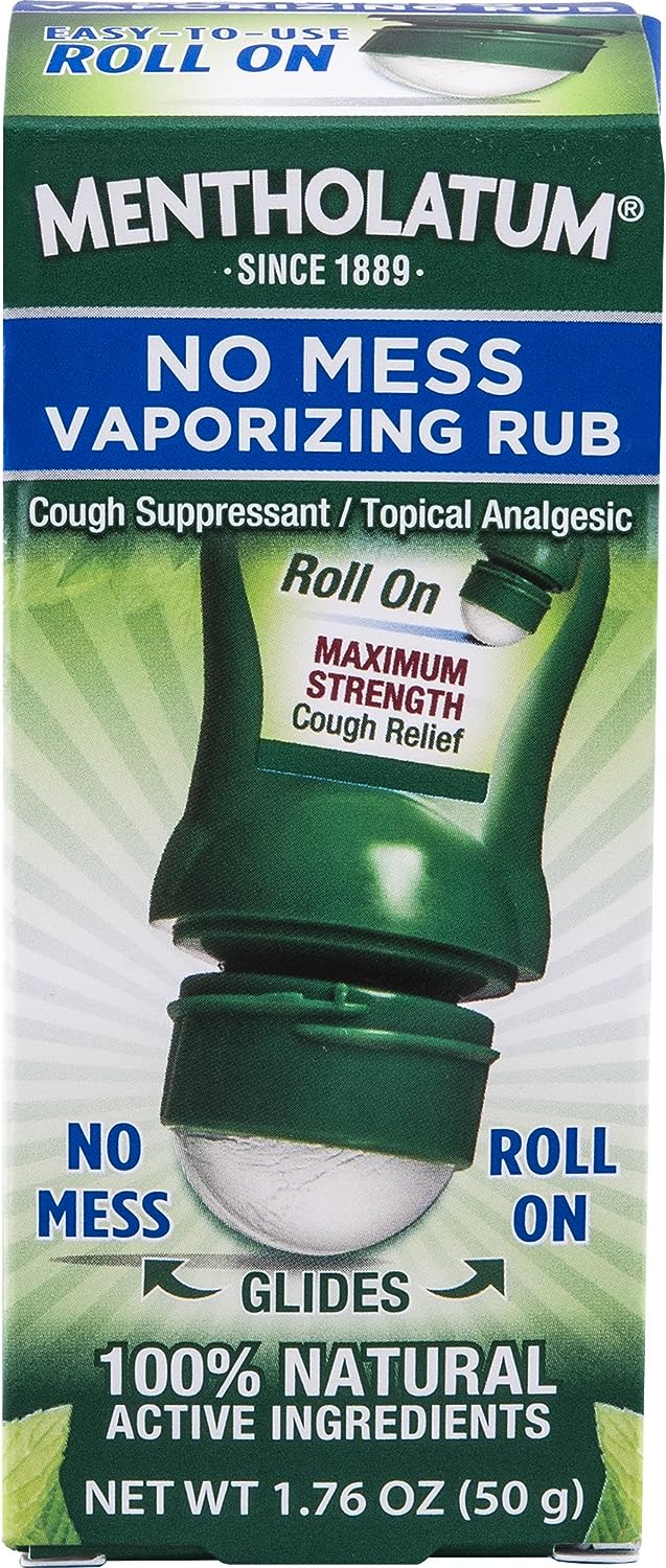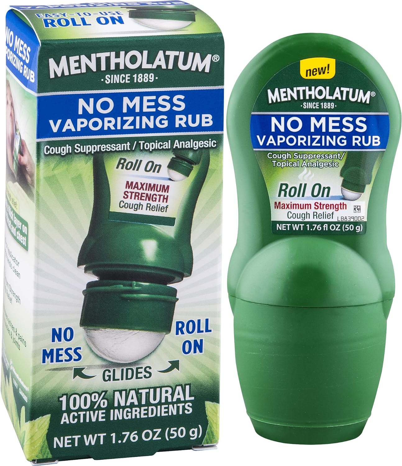 Mentholatum No Mess Vaporizing Rub with Easy-to-use Roll On Applicator, 1.76 Ounce (50g) - 100% Natural Active Ingredients for Maximum Strength Cough Relief