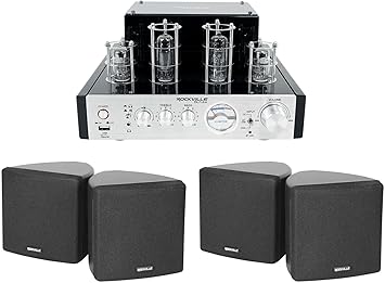 (1) Rockville BluTube 70w Tube Amplifier/Home Theater Stereo Receiver w/Bluetooth Bundle with (4) Cube by Rockville of 3.5" Black Home Theater Wall Speakers+Swivel Brackets (5 Items)