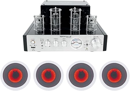 (1) Rockville BluTube 70w Tube Amplifier/Home Theater Stereo Receiver w/Bluetooth Bundle with (4) Rockville HC65-LED 6.5" 500 Watt in-Ceiling Home Theater Speakers with LED (5 Items)
