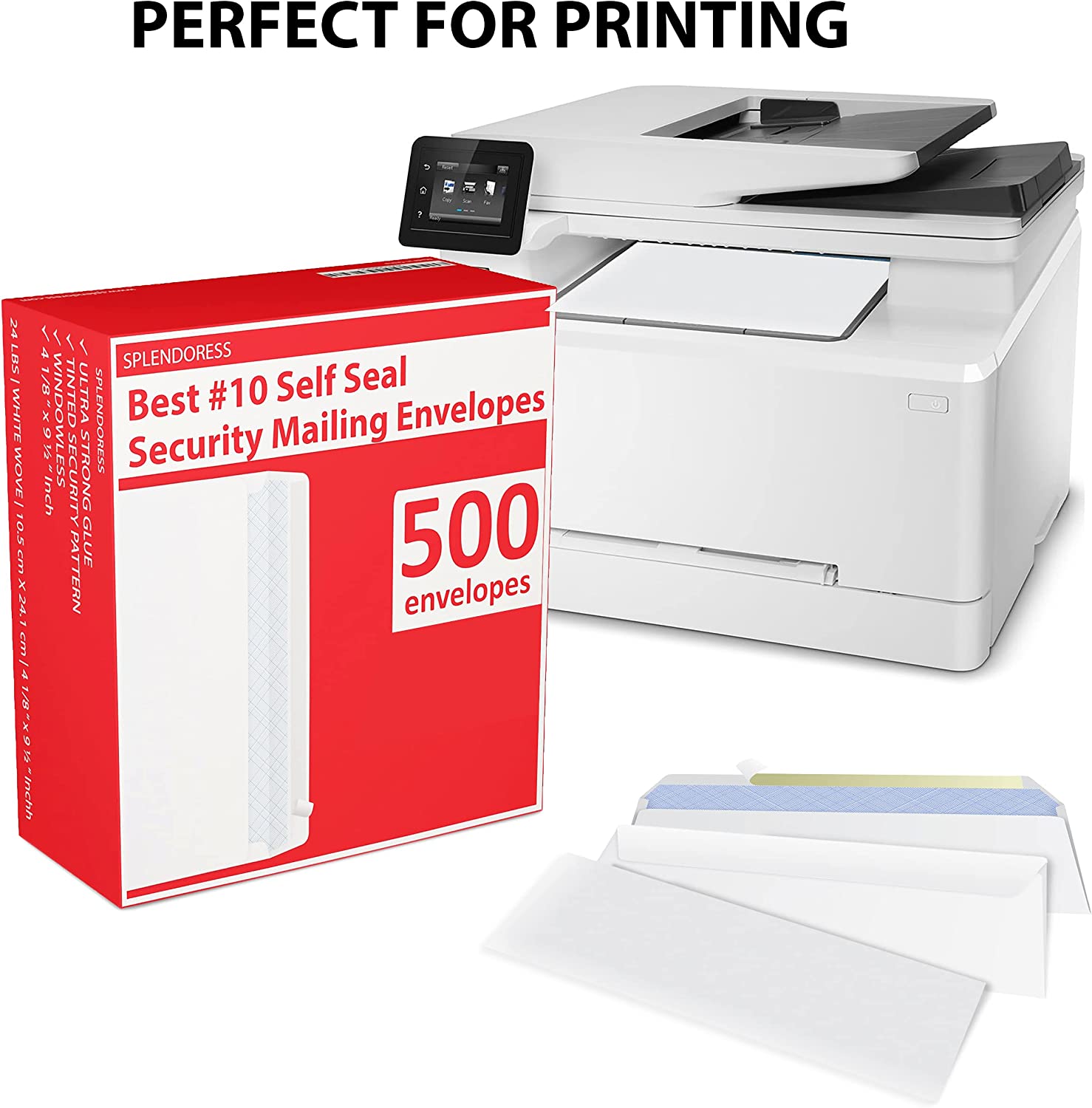 #10 Envelopes Letter Size Self Seal, Business White Security Tinted Peel and Seal, 500 Pack Windowless, Legal Size Regular Plain Envelopes 4-1/8 x 9-1/2 Inches - 24 LB Envelops