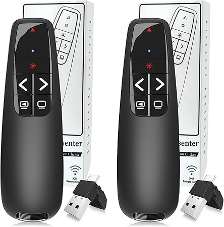 (2 Units) Wireless Presentation Clicker PowerPoint Presenter Remote: Clicker with Red Laser Pointer Long Range PPT Control -Power Point Google Slide Advancer for Mac Laptop PC Computer Keynote