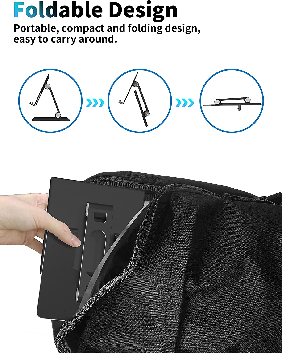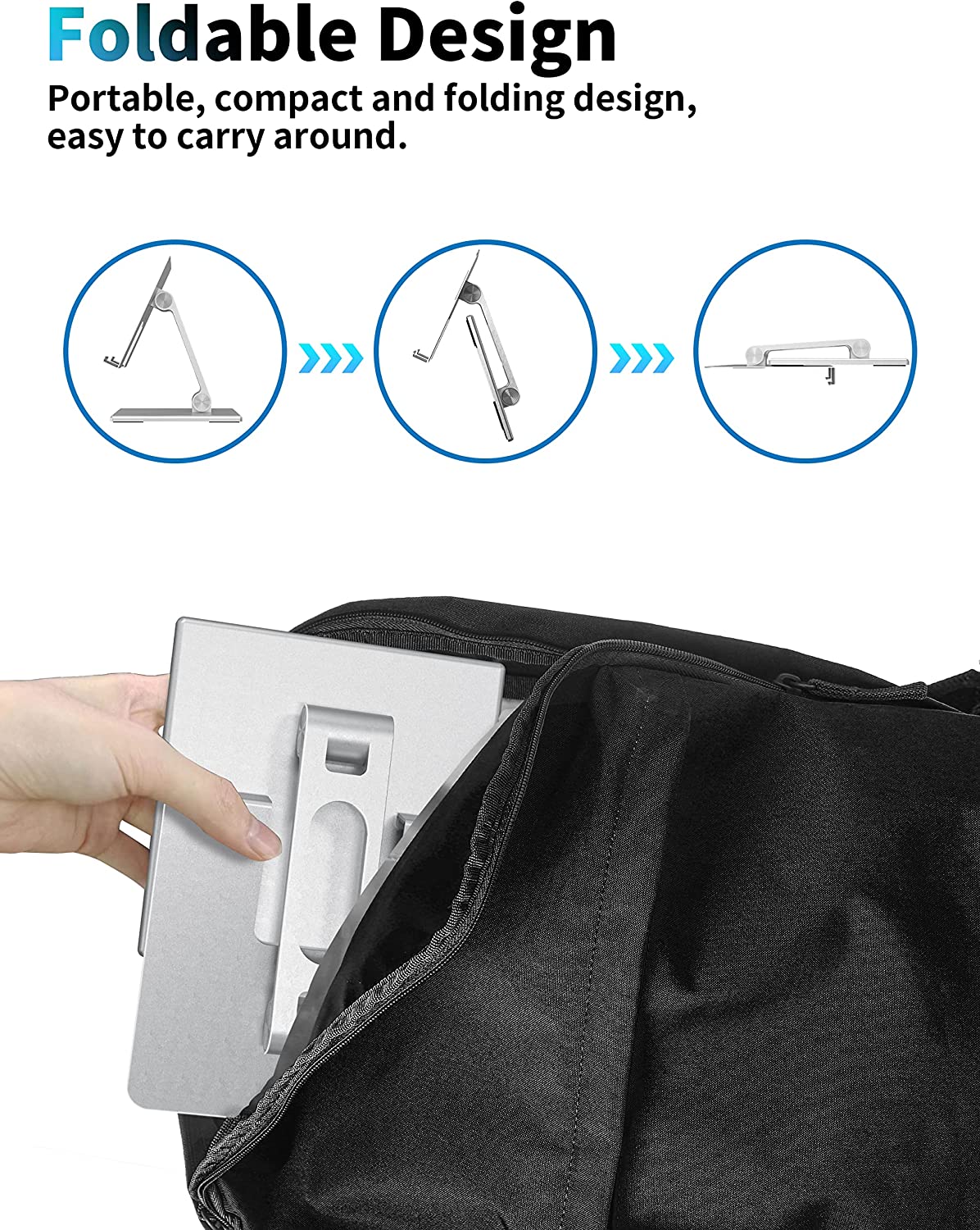 • Multi Angles Adjustable - Upgraded solid shafts provide height and angle adjustment, supporting both portrait or landscape viewing that always meet your needs. It’s fully foldable that you can travel with it, such as office, school, kitchen.