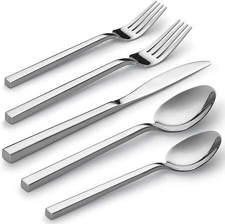 Alata Cube 20-Piece Forged Stainless Steel Flatware Set Cutlery Set, Silverware Set Service for 4, Mirror Finish, Dishwasher Safe