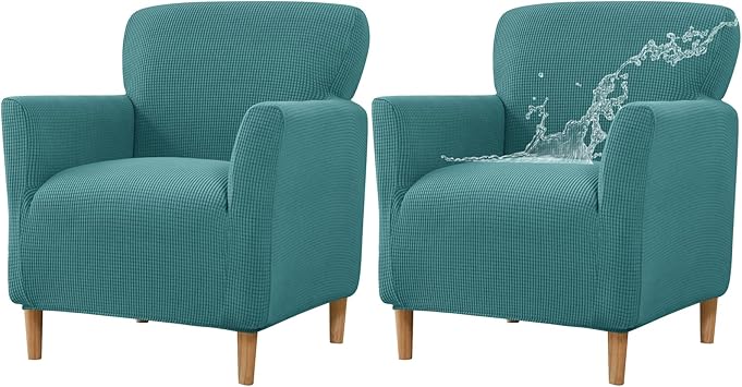 Banquet Armchair Slipcover Luxury Waffle Chair Slipcovers with Arms Stretch Chair Covers for Living Room Soft Club Chair Cover Anti Slip Dog Pet Friendly Furniture Protector, Blue