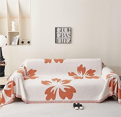 Chenille Sofa Throw Blanket Floral Sofa Towel Sofa Cover 1/2/3/4 Seaters Sofa Throw L/U Shape Tassels Decorative Sofa Slipcover Warm Thick Armchair Cover Blanket(Orange, 180X130cm)