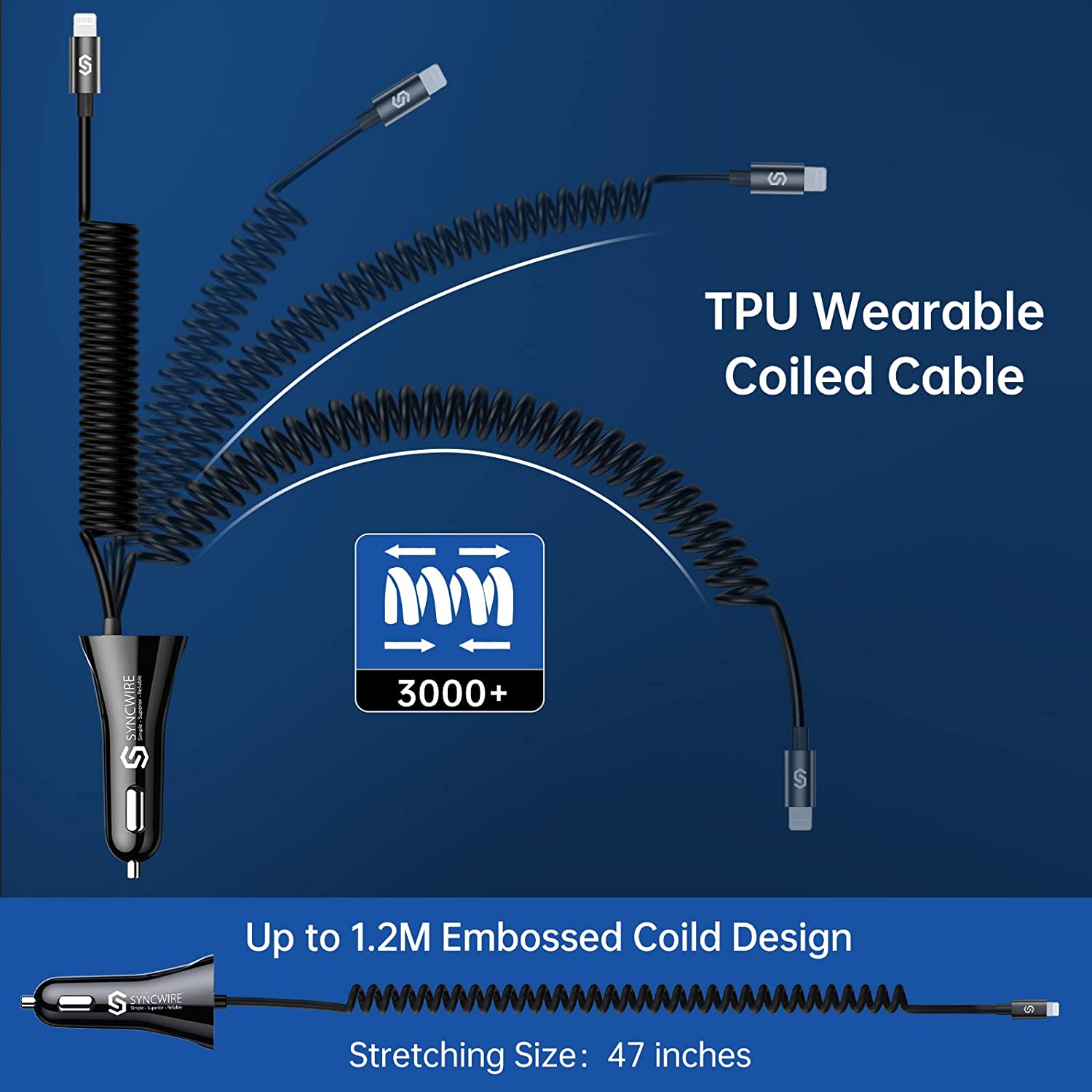Syncwire iPhone Car Charger - Upgrade [Apple MFi Certified] 4.8A/24W Car Charging Adapter with Built-in Coiled Lightning Cable for Apple iPhone 14/13/12/11/Xs/XS Max/XR/X/8/7/6s/6 Plus, iPad & More