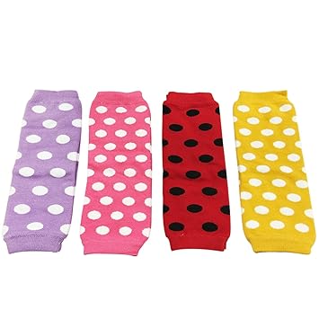 Wrapables Colorful Baby Leg Warmers Set of 4, Polka Dot Purple, Hot Pink, Red, Yellow