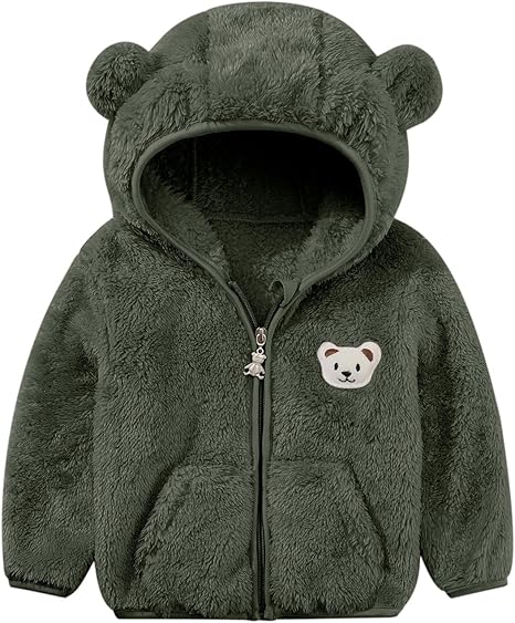 Baby Boys Girls Fleece Jackets Zip Up Hoodies Cute Bear Coats Fall Winter Fuzzy Jacket Newborn Boys Girls Outwear