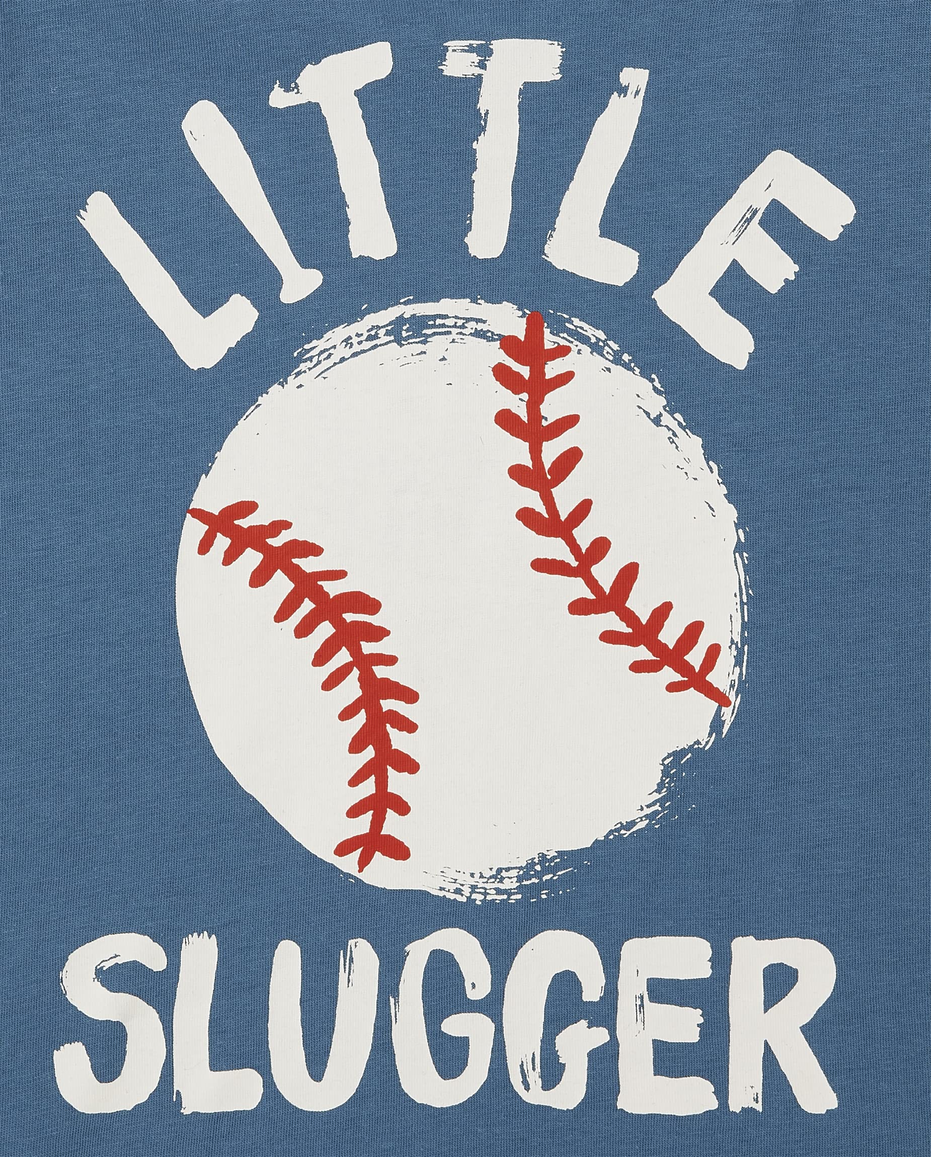• DESIGN — Features a rib-knit crew neck, short sleeves and 'Little Slugger' with baseball graphic design at front