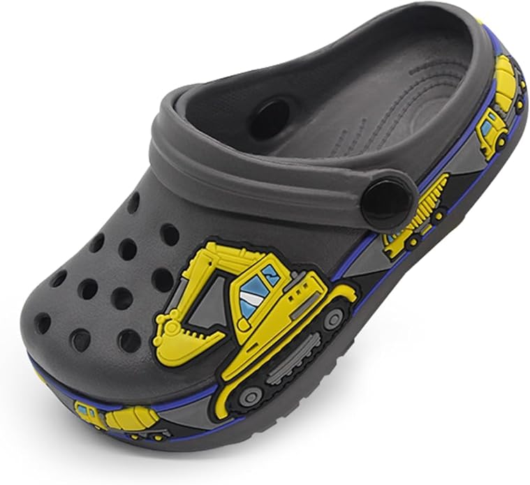 FolHaoth Toddlers Clogs EVA Cute Cartoon Excavator Racecar Pattern Boys Girls Clogs Slip on Lightweight Breathable Kids Clogs Sandals Non Slip Indoor Outdoor Beach Pool Shower Slippers Shoes