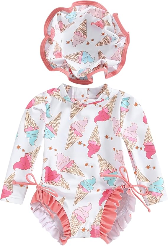 pengnight Toddler Baby Girl Swimsuit One-Piece Long Sleeve Ruffle Floral Print Rash Guard Zipper Bathing Suit
