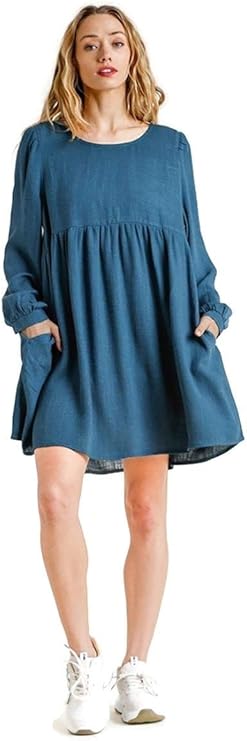 Umgee Women's Keyhole Babydoll Pocket Dress