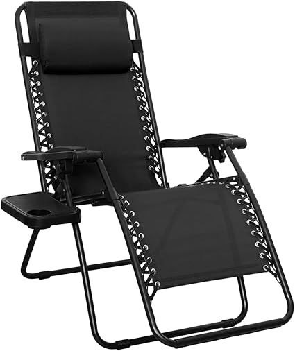 Amazon Basics Outdoor Textilene Adjustable Zero Gravity Folding Reclining Lounge Chair with Pillow, 26", Black