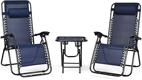 Giantex 3 PCS Zero Gravity Chair Patio Chaise Lounge Chairs Outdoor Yard Pool Recliner Folding Lounge Table Chair Set (Navy)