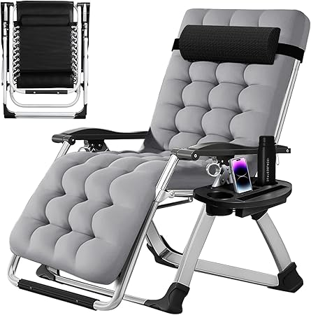 OFIKA Zero Gravity Chair, Adjustable Folding Reclining Lounge Chair with Removable Cushion&Headrest, Cup Holder, Foot Rest, Polyester Mesh, Reclining Patio Chair for Indoor and Outdoor