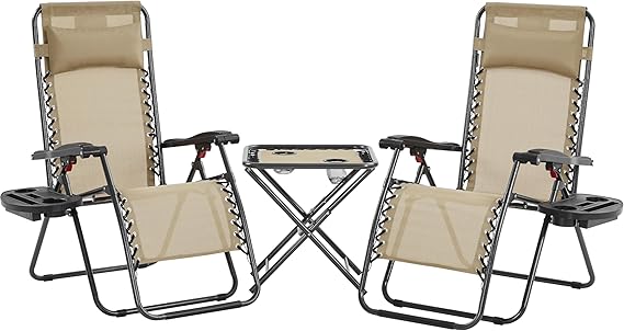 Yaheetech 3PCS Zero Gravity Recliner Portable Outdoor Reclining Chair Set w/Side Table Folding Chaise Lounge Chairs for Patio Beach Deck Garden Pool