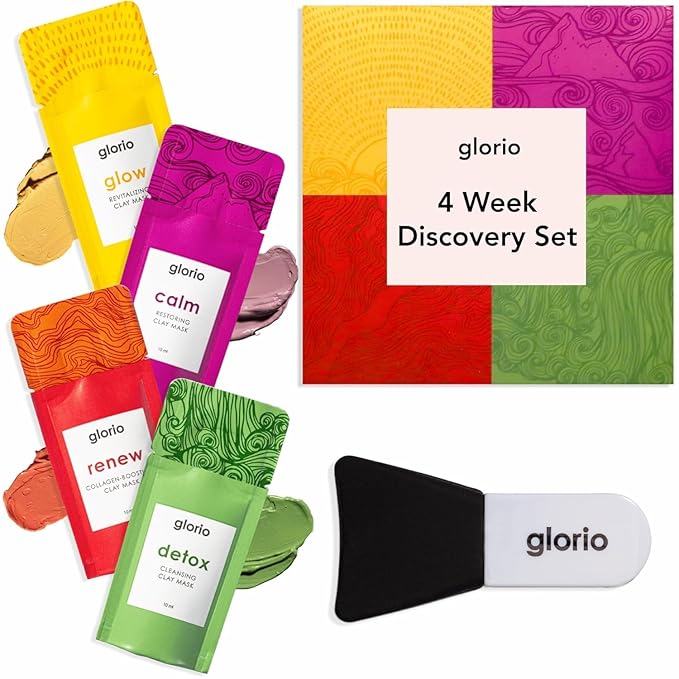 Glorio Discovery Kit: Clay Face Mask Treatments - 4 Week Beauty Gift Set - Facial Skin Care: Boost Radiance, Minimize Pores, Reduce Wrinkles, Dry Irritated Skin - Indian Healing Clay, Beauty Skincare