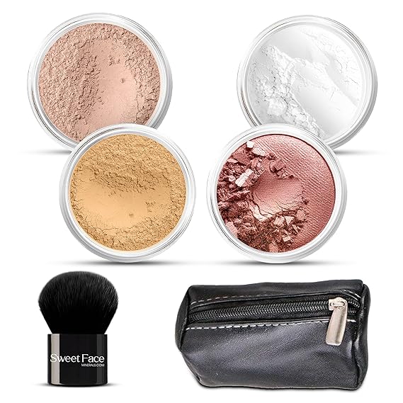 6pc FULL SIZE KIT KABUKI & KABAGGIE Tote Mineral Makeup Set Matte Foundation Bare Face Sheer Powder Cover (Light Tan)