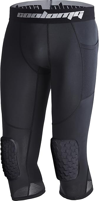 COOLOMG Basketball Leggings with Knee Pads for Kids Youth 3/4 Compression Pants Capri Tights Side Pockets