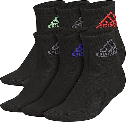 adidas Kids' Superlite Classic Quarter Socks (6 Pairs) - Lightweight, Breathable Athletic Fit