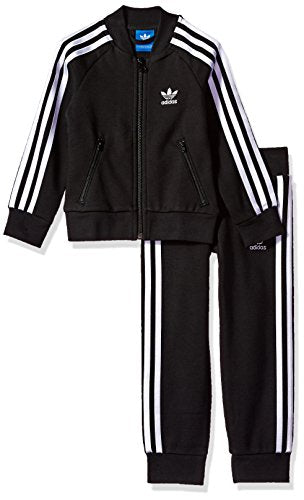 Details: The legacy of the iconic adidas superstar gets retold in soft fleece for girls. This full-zip track suit comes with all the authentic details and is signed off with applied stripes down the sides.