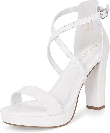 ALICEPUB 4Inch Platform Heels Chunky Block High Heels Strappy Heels Open Toe Heeled Sandals Comfortable Dressy Shoes for Women Wedding
