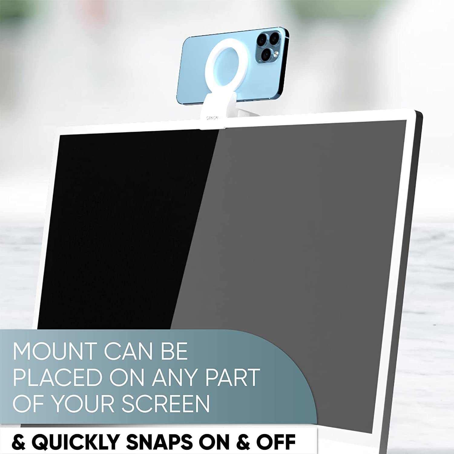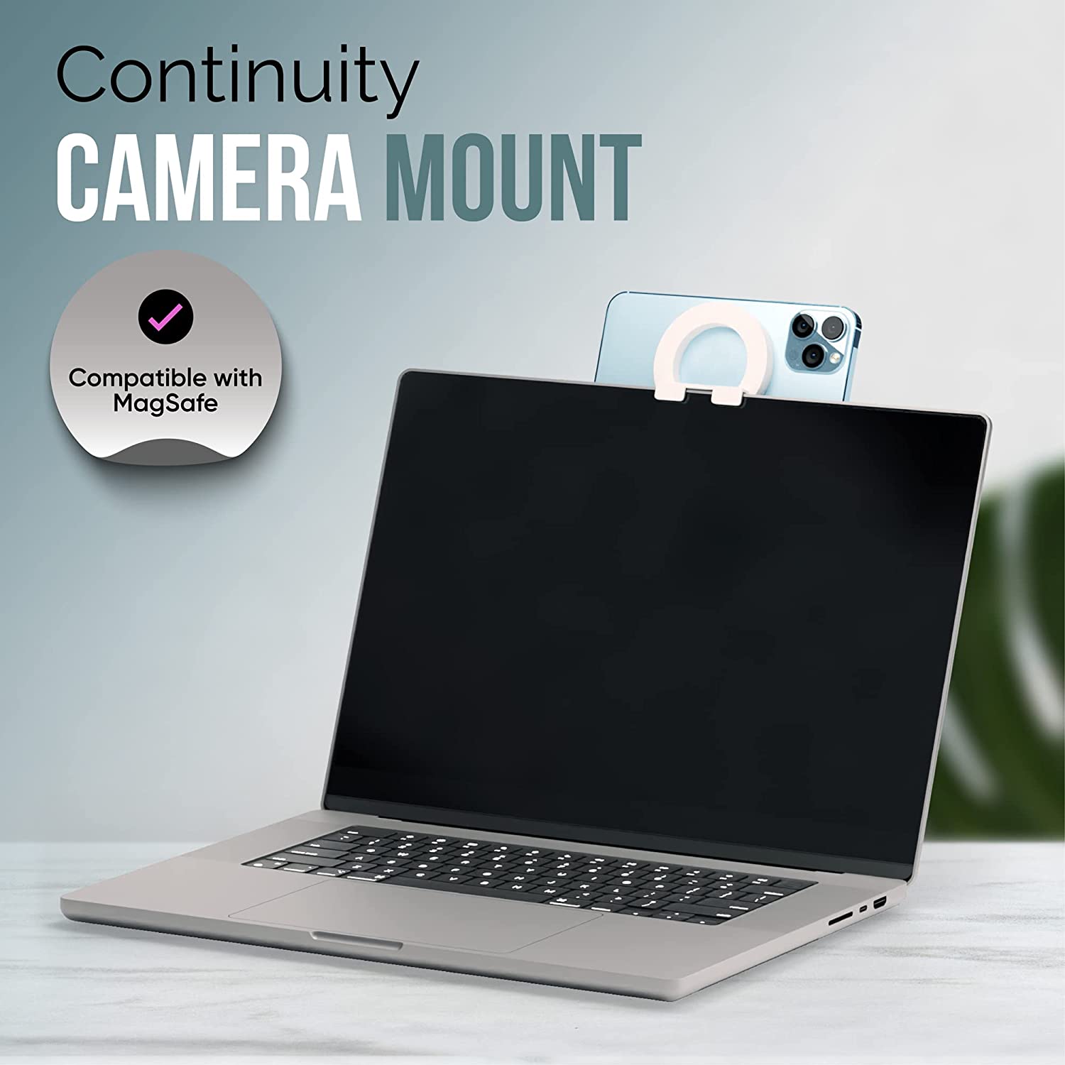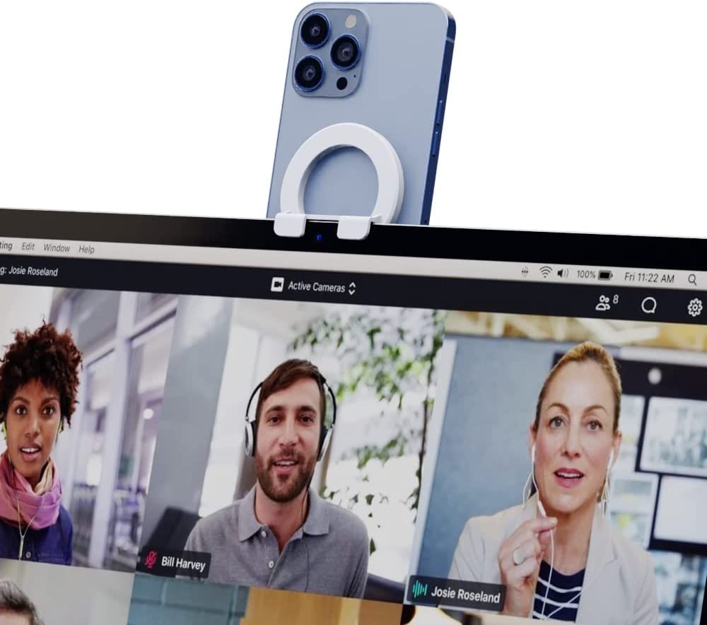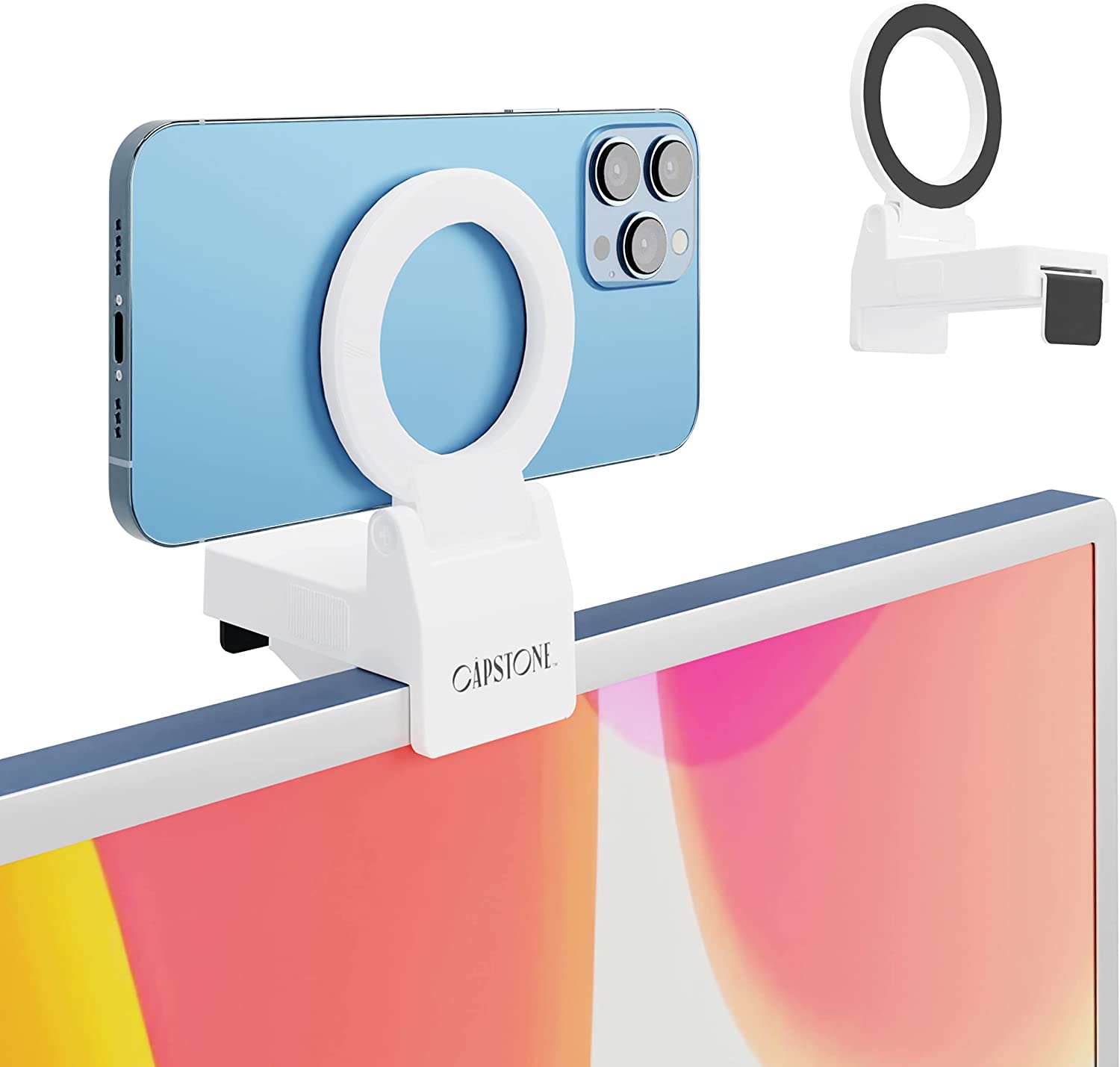 Capstone Continuity Camera Mount for Desktop Monitors with a Flat Back | 30 Degree Tilt for Desk View | Connects via MagSafe | for iPhone 12, 13 & 14 | for iOS 16 + Mac OS Ventura or Later