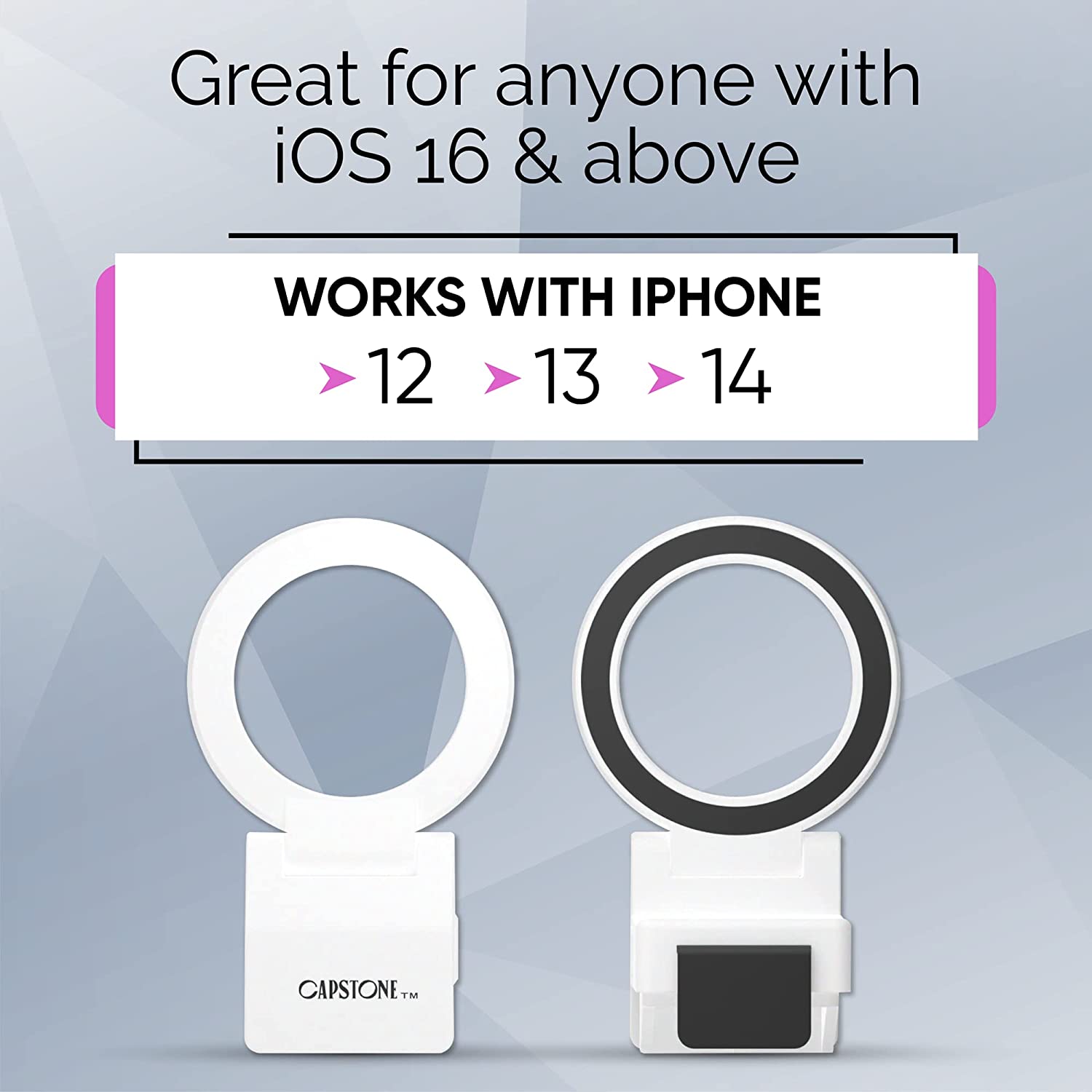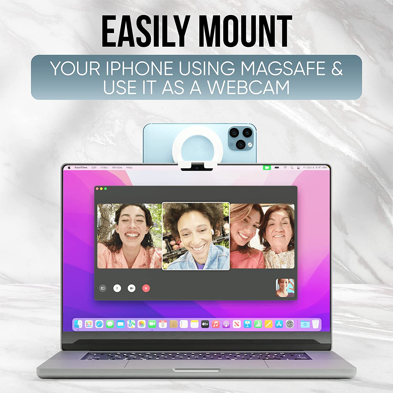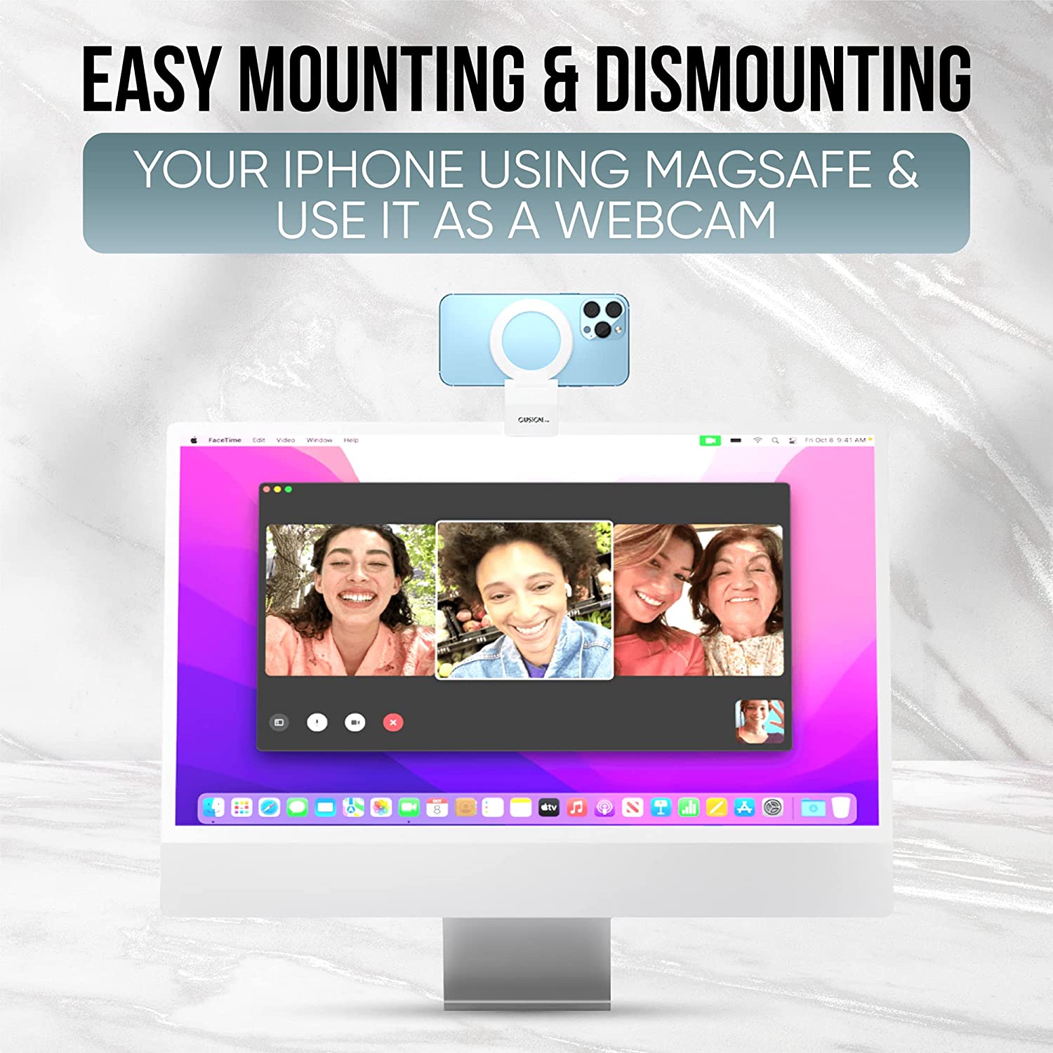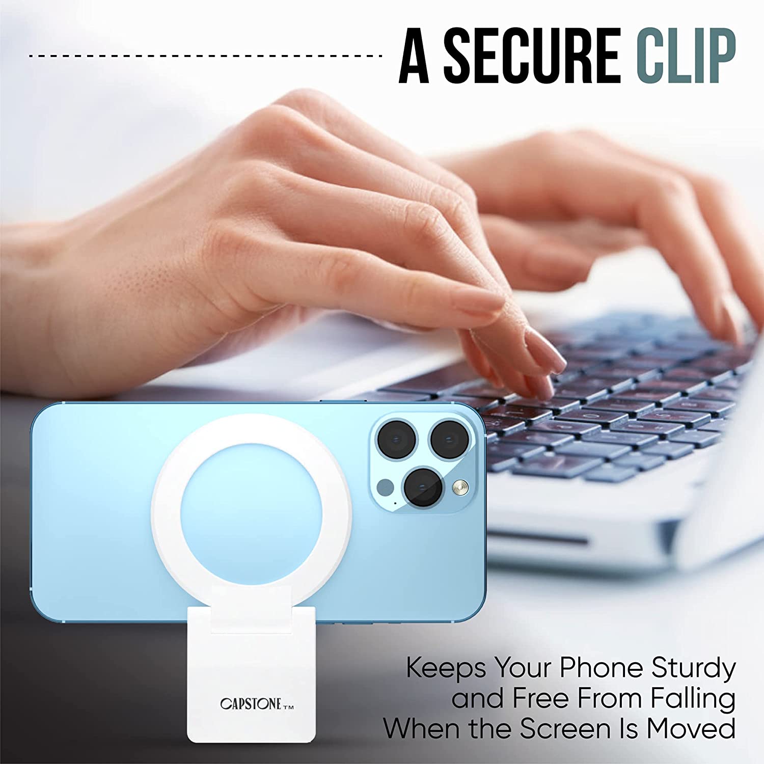 Capstone Continuity Camera Mount for Desktop Monitors with a Flat Back | 30 Degree Tilt for Desk View | Connects via MagSafe | for iPhone 12, 13 & 14 | for iOS 16 + Mac OS Ventura or Later