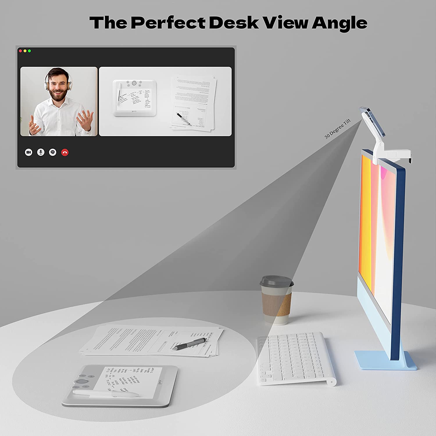 • Adjustable Viewing Angle from Vertical to 30 Degrees Downward for the Perfect Camera View and Continuity Camera Angle
