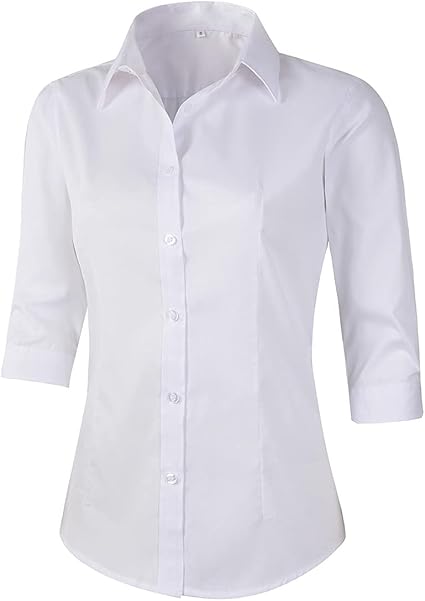 Beninos Women's 3/4 Sleeve Formal Work Wear White Button Down Shirt
