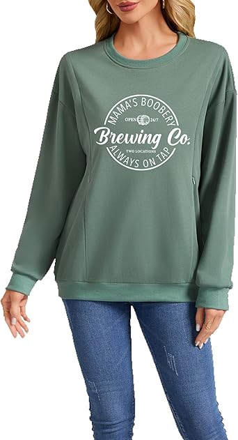 AEARGIV Women Causal Maternity Nursing Sweatshirt Comfort Friendly Zip Breastfeeding Pullover Tops Mama's Boobery Sweater