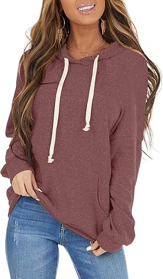 PRETTODAY Women's Casual Lightweight Hoodies Long Sleeve White Drawstring Sweatshirts Loose Pullovers with Pocket