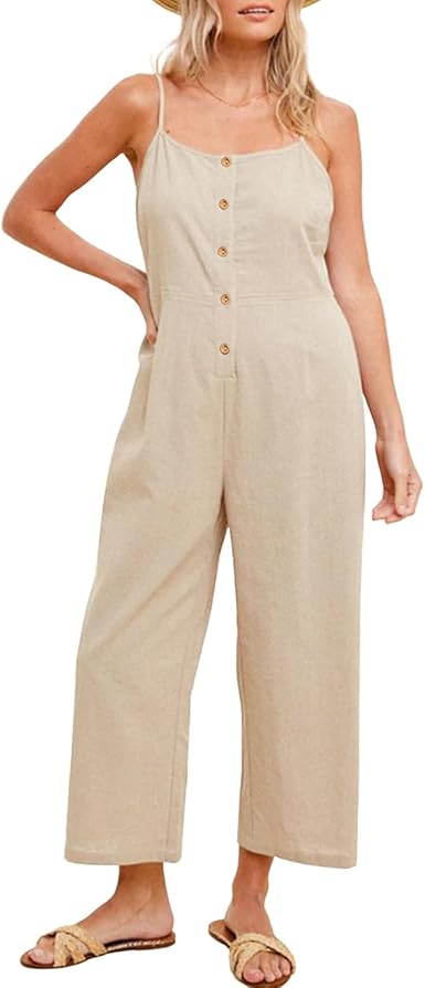 HOTIAN Womens Linen Cotton Overalls Straps Jumpsuits Casual Loose Jumpers 2025 Baggy Rompers