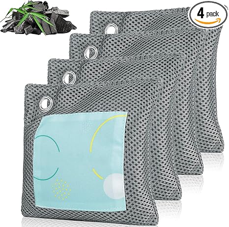 4 Pack Activated Charcoal Odor Absorber, Bamboo Charcoal Air Purifying Bag 200g/7 oz, Natural Fresh Air Freshener, Fragrance-free Odor Eliminator for Home Use, Car, Closet Deodorizer