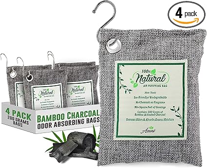 Asani Air Purifier Bags with Bamboo Activated Charcoal (Purifying Pack of 4) | Natural Air Freshener Deodorizer | Moisture Absorber and Odor Eliminators for Home, Car, Refrigerator, Closet (200g Each)