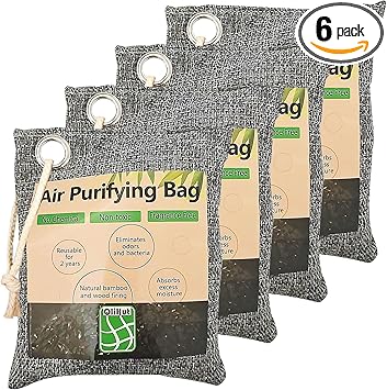 Nature Fresh Charcoal Bags (Large, 4 Pack, 200g each) Odor Absorber, Reduce Odors Naturally with Bamboo Charcoal Air Purifying Bags for Car, Home, Closet, Shoe Deodorizer Eliminator Freshener Remover