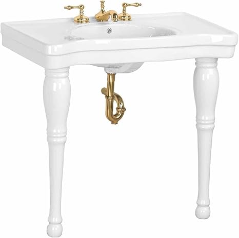 Renovators Supply Belle Epoque Console Sink 36 in. White Bathroom Console Sinks with 2 Porcelain Legs, Widespread Faucet Holes