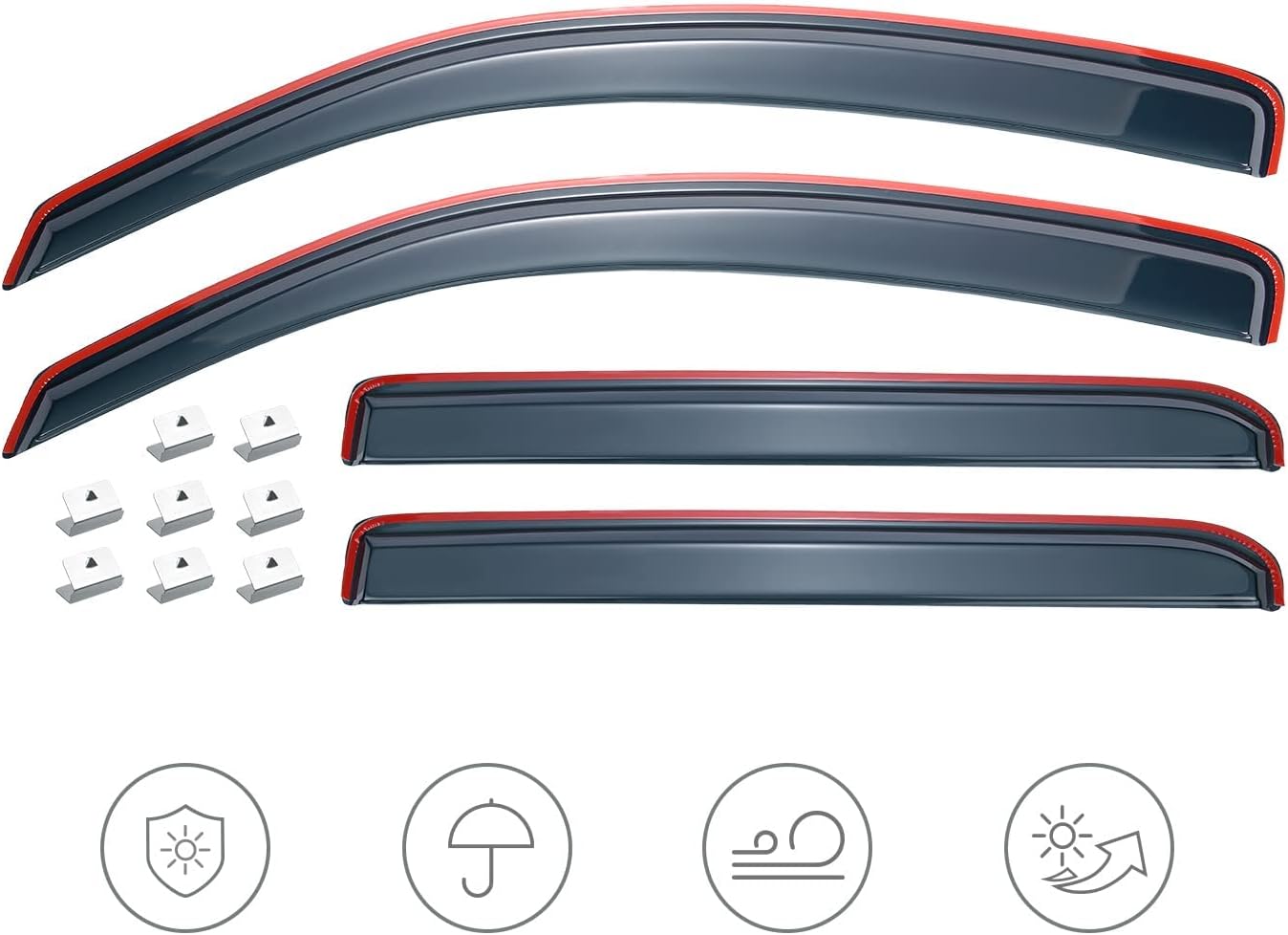 • RAINPROOF & ANTIFOG - Allows Windows to Be Opened a Bit, and Stop Rain Water Not Entering Through the Window Visor, Let Fresh Air In, Avoid the Window Being Fogging, Perfectly for Car Driving.