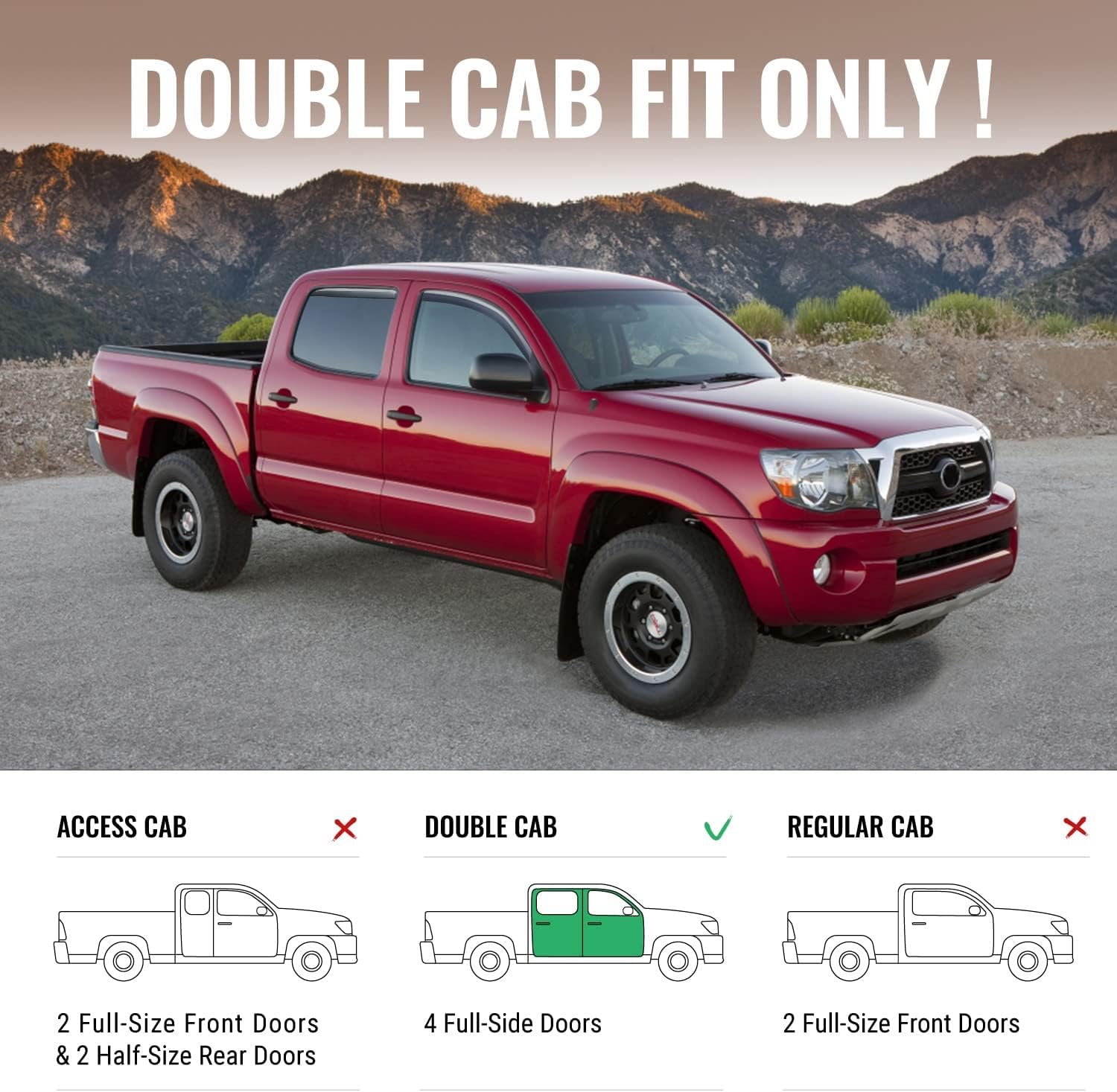 ISSYAUTO in-Channel Rain Guards Compatible with 2016-2023 Tacoma Double Cab Side Window Deflectors, Vent Window Visors, Front+Rear