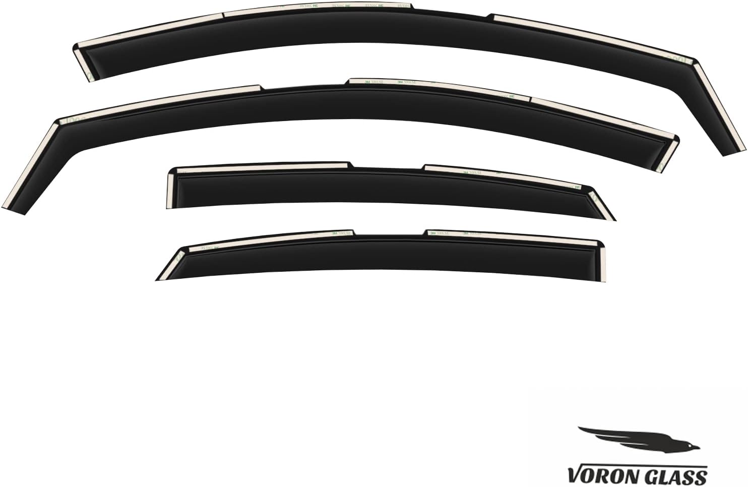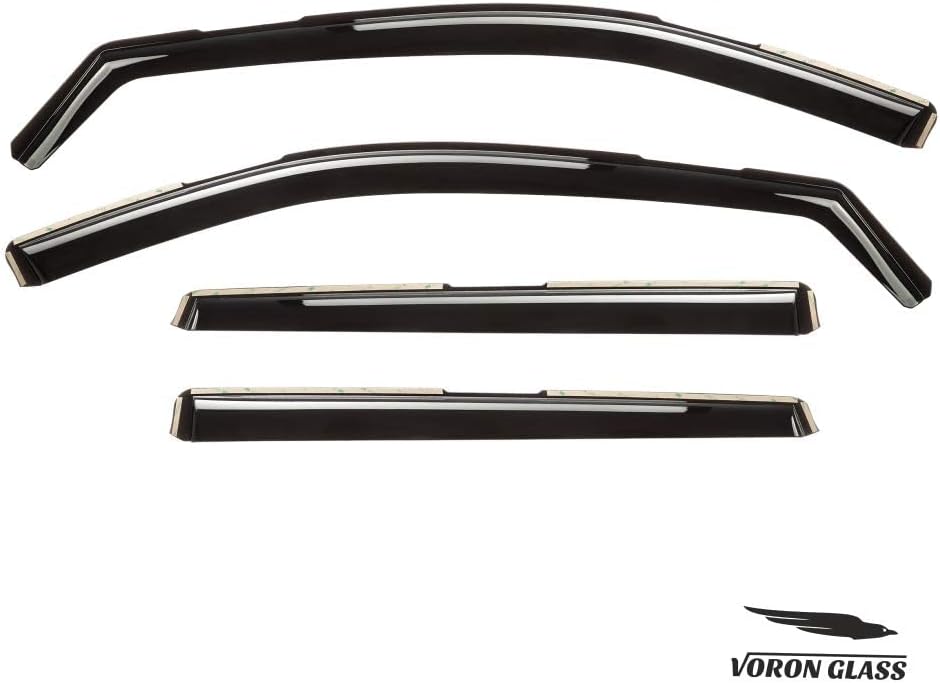 Block out sun rays, rain drops, and wind while you’re driving down the road with premium Voron Glass window deflectors. When the weather finally starts warming up or you’ve got to roll your window down when it’s raining, you don’t want the sun, wind, or rain to keep you from enjoying sitting behind the wheel of your vehicle. That’s why we created these high-quality Voron Glass Window Deflectors that install over your side windows seamlessly to help improve circulation in your vehicle when the window is down, block sun rays from pouring in, and even keep rain from dripping down onto the inside of your armrest. Better Coverage with an In-Channel Design. Strong, durable, and easy to install without any tools at all these window deflectors come in a wide range of sizes to match different vehicle models and body types. Better yet, they boast an in-channel design that impact your window going up or down while still delivering year-round coverage for all types of weather. Product Details: -Premium Voron Glass Window Deflectors (4 Pc. Set); -Helps Block Rain, Wind, and Sun Rays; -Shatter-Resistant Polycarbonate Craftsmanship; -Streamlined Placement for Optimized Window Support; -Quick and Easy Installation; -Available for Multiple Vehicle Models and Body Styles; -Trusted Quality Assurance. Get premium Voron Glass window deflectors for your vehicle today and start enjoying a more comfortable ride all year-round. Get them now by clicking Add to Cart above today.