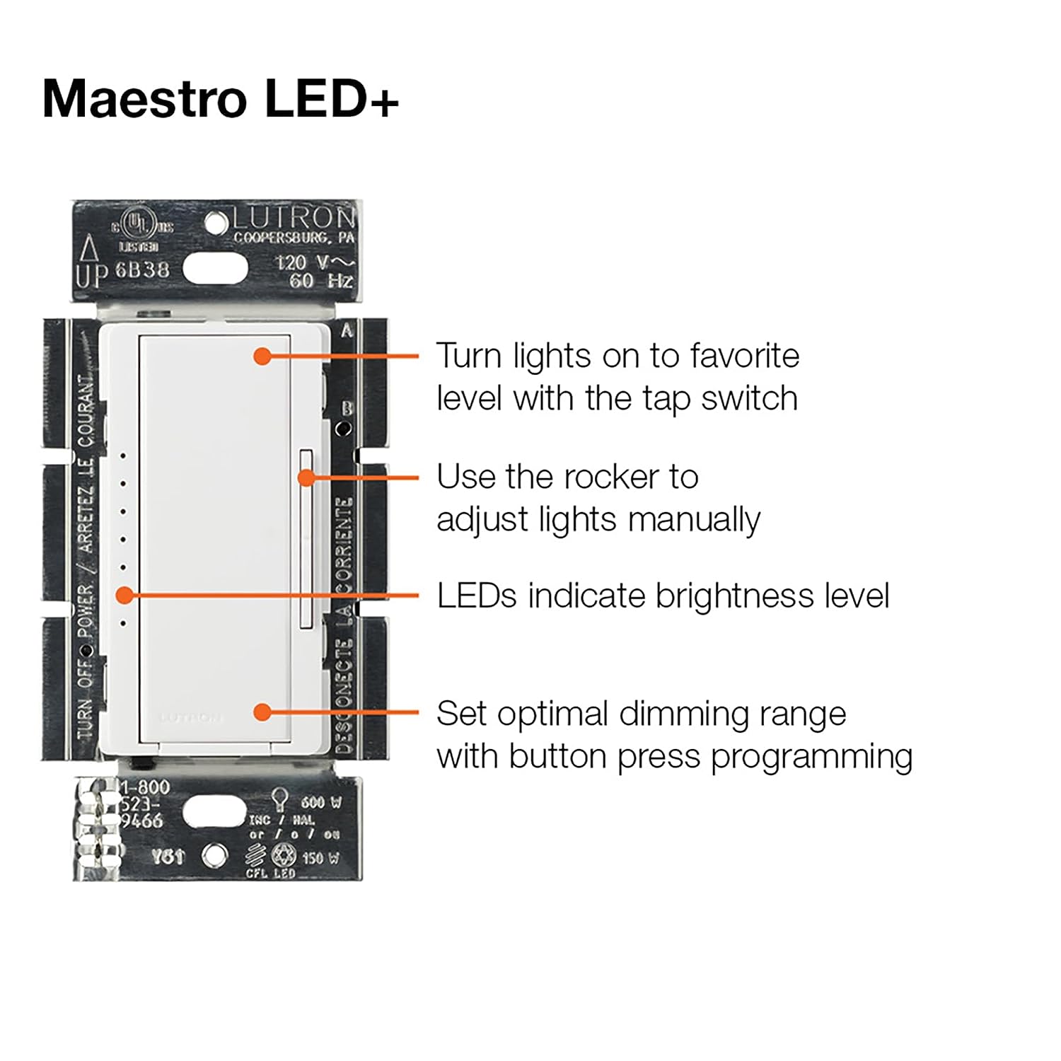 • Includes (1) Maestro LED+ dimmer switch; coordinating wallplate sold separately