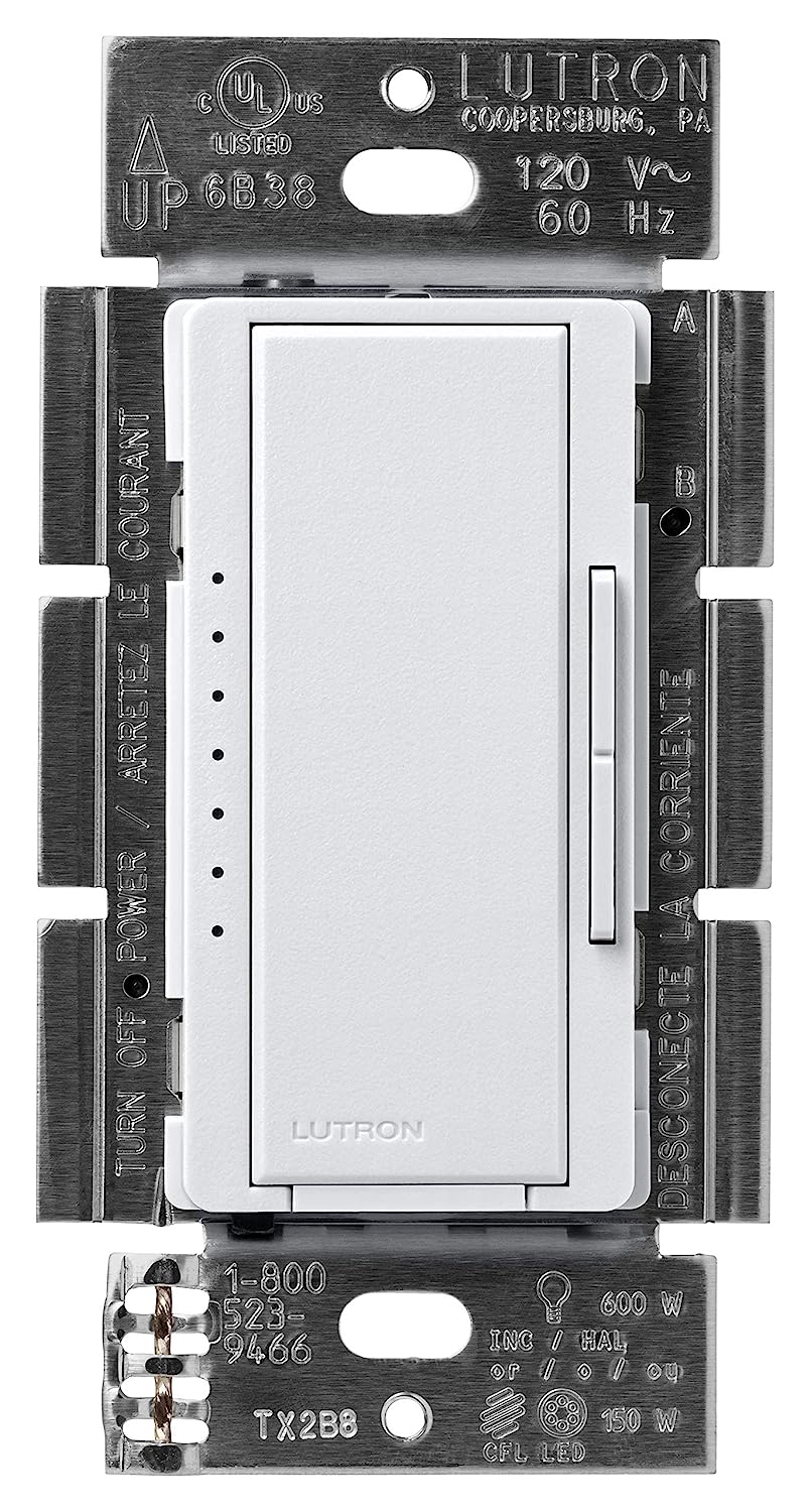 Lutron Maestro LED+ Dimmer Switch for Dimmable LED, Halogen and Incandescent Bulbs, 150W/Single-Pole or Multi-Location, MACL-153M-WH, White