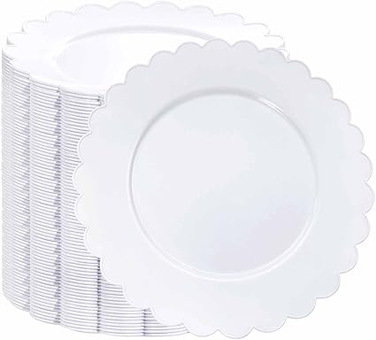 SUT 72Pcs Plastic Plates, 10.25inch White Dinner Plates, Disposable Dinner Plates, White Heavy Duty Plastic Plates, Disposable Plates, White Scallop Plates for Occasion