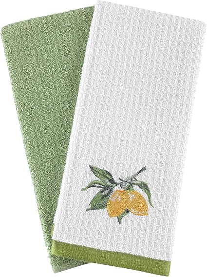 Kitchen Towels - Ultra Soft Cotton and Super Absorbent Dish Towels for Kitchen, Large Kitchen Towel 24x16 Inches, Natural Cotton Dish Towels Pack of 2 (Lemon)