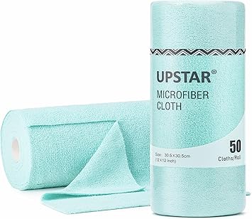 UPSTAR Microfiber Cleaning Cloth, Reusable Paper Towels Rolls, Cleaning Rags for Kitchen, Bathroom, Car, 12x12 inch, 50 Packs/Roll, Blue