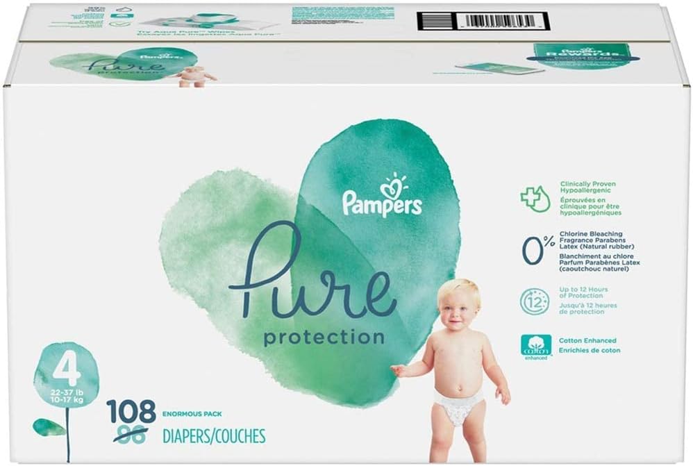 Diapers Size 1, 198 Count - Pampers Pure Protection Disposable Baby Diapers, Hypoallergenic and Unscented Protection (Packaging & Prints May Vary)