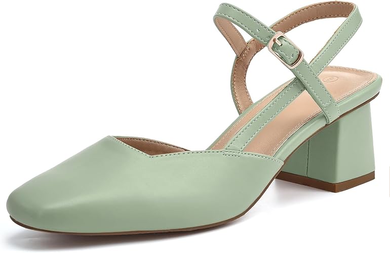 Rilista Women's Slingback Chunky Low Heels Closed Square Toe Heel Wedding Party Dress Pumps Shoes