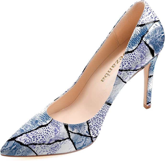 Womens High Stiletto Heels Multicolor Floral Printed Closed Toe Sexy Rivets Pumps Shoes
