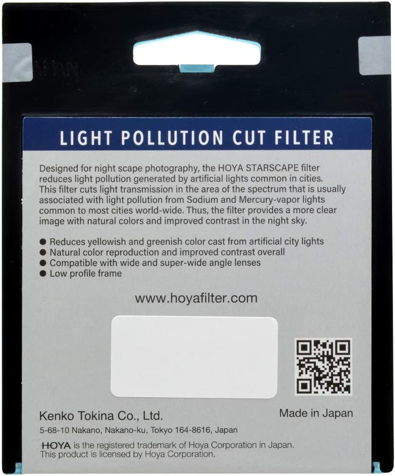 HOYA Starscape light-pollution filters feature special optical glass which selectively filter out the yellow and greenish light pollution coming from distant street lights, which often ruins nigh time and astro shots. The result is more natural-looking images and improved overall contrast. HOYA Starscape filters significantly reduce the amount of time required to correct colour cast in RAW post-processing - images rendered without these filters can become degraded at pixel level. The use of Starscape filters can also save a huge amount of time normally required for the post-processing of time-lapse sequences. These filters are made in Japan from the highest quality optical glass, they have low-profile filter frames and are ideal for using with wide and super-wide-angle lenses. They are available in a full range of screw-in diameters from 49mm to 82mm.
