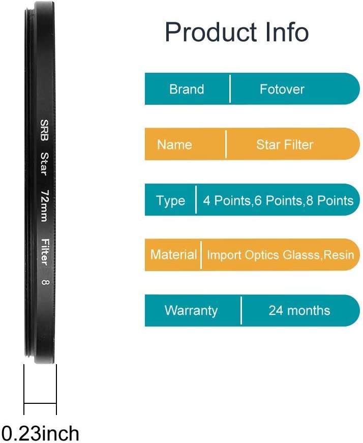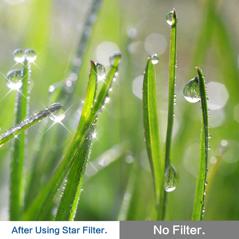 -The star filter can make every bright spot in photo producing star-shaped flash-like dazzling effect.The brighter the spot, the more pronounced the star effect.Perfect for night scenery, gemstones, glassworks, metal works photography.